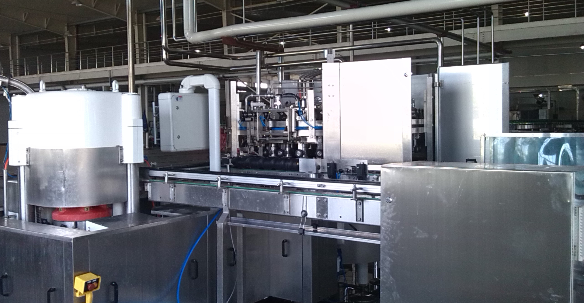The cleaning liquid is passing the material pipeline, full filling tank, through the distributor back to the CIP system. Then the production line can run again. the cleaning media has hot water, acid and alkali. 3 cleaning media is working properly according to the setting process.