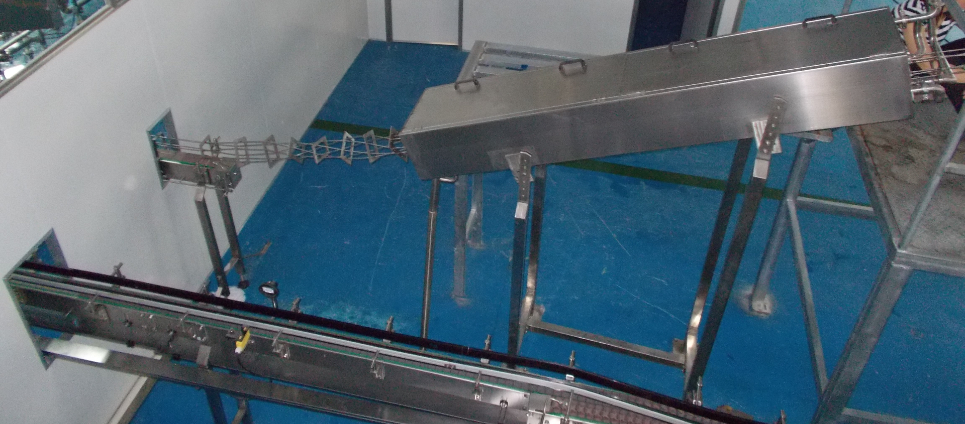 All bottles are transported into each machine by conveyor system. All systems of the production line are linked with conveyor system. SS conveying belt conveyor is necessary for glass bottle transportation in order to extend conveying belt lifetime.